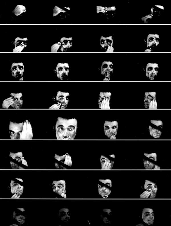 إلى "وجه - عتبة" منه إلى "وجه - قناع". إنَّها عمليَّة دهن الوجه بالطلاء الأسود ومسحه، عملية تَتْبع