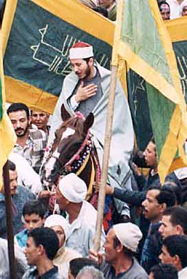 Mulids were first celebrated by the Fatimid rulers of Egypt (969-1171), who marked the anniversaries of the Prophet, Ali, Fatima and the reigning Imam with great celebrations. "The colourful banners that we see at the mulids date from that time," explains calligrapher Ahmed Sultan. "The Fatimids came as conquerors and entered Cairo bearing their flags. The Sufi orders accompanying the soldiers had their distinct banners, and from that day on the practice has been adopted by the Egyptian Sufi orders."