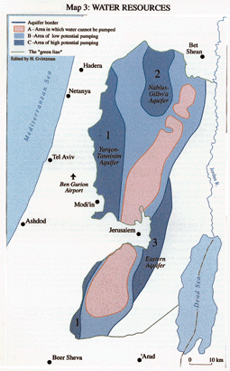 Accordingly, the Mountain Aquifer is divided into three subareas marked on the map by the numbers 1-3, representing different levels of strategic importance, as follows: