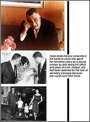Hoda Abdel-Nasser remembers the home in which she spent her formative years as a young woman as also being her office and place of work. Indeed, she had been selected for the task of secretary precisely because she could work "from home." Her father, provided a lot of practical guidance, giving her a firm sense of his thinking about the political issues that confronted him, his strong sense of social justice forming the sound moral structure that was the basis of their working relationship.
