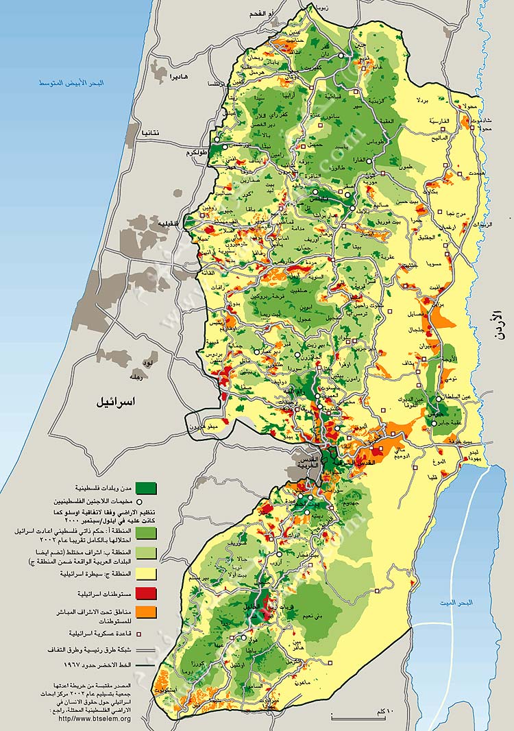 في الرابع من أيار/مايو 1994 تم التوقيع على اتفاقية القاهرة المعروفة بـ "أوسلو واحد" والتي تلحظ حكما ذاتيا لمنطقة أريحا في الضفة الغربية و60 في المئة من قطاع غزة وإقامة سلطة وطنية فلسطينية فيهما. أما اتفاقية "أوسلو٢" الموقعة في نهاية ايلول/سبتمبر 1995 فإنها توسع الحكم الذاتي إلى مدن جنين ونابلس وطولكرم وقلقيلية ورام الله وبيت لحم المصنفة ضمن "المنطقة أ" تحت الإشراف الفلسطيني (٣ في المئة من الاراضي الفلسطينية المحتلة و20 في المئة من السكان). تبقى المدن والقرى الأخرى ضمن "المنطقة ب" حيث تحتفظ اسرائيل بالإشراف "الأمني" والسلطة الفلسطينية بالإدارة المدنية (24 في المئة من الأراضي و68 في المئة من السكان)، على أن تبقى "المنطقة ج" تحت السيطرة الاسرائيلية. اعتبر هذا التقسيم إنتقاليا على أن تقوم اسرائيل بانسحابات تدريجية غير محددة المساحة وقد قامت بها جزئيا وفي مهل متأخرة.