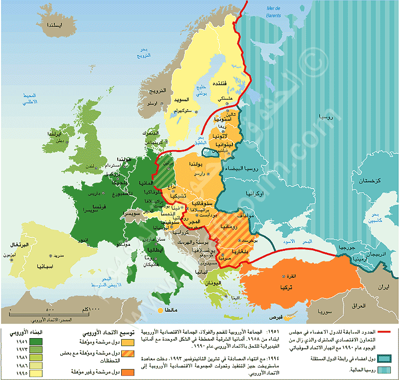 إن لتعريف حدود الاتحاد الأوروبي مغزى كبيراً. ففي نهاية التسعينات كان هناك سيناريو يقترح تعريفا موحدا لدائرة الاتحاد الأوروبي ومنطقة اليورو وحلف شمال الاطلسي بعد التوسيع الأول لهذا الحلف (بولونيا والمجر وتشيكيا أي دول أوروبا الوسطى الكاثوليكية). وكان هناك مفهومان مفترضان يدعمان هذه الرؤية: مفهوم "النواة الصلبة الأوروبية" ومفهوم "الحيّز الحضاري" الذي أطلقه صموئيل هنتغنتون ومؤداه فصل أوروبا الكاثوليكية عن أوروبا الأرثوذكسية.