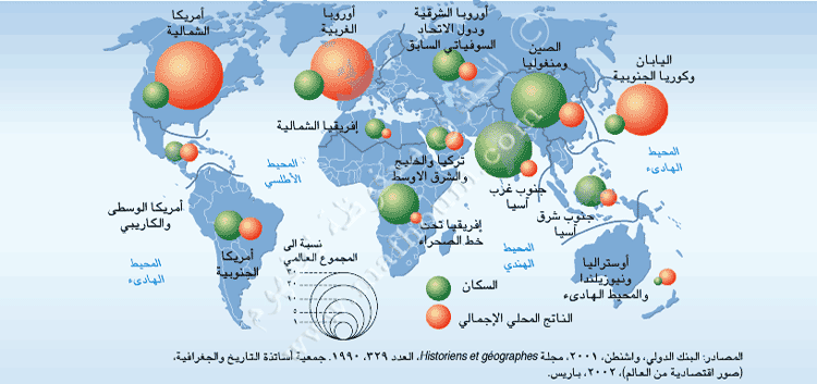 المحلي الإجمالي في مناطق العالم الكبرى |
