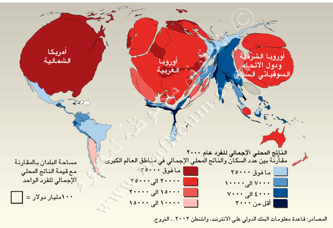 للدولار تختلف بحسب البلدان. لذلك يقترح البنك الدولي ناتجا محليا للفرد يأخذ في