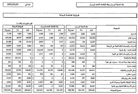 المجمّعتين التقديريتين غير المدققتين بتاريخ 31/3/،2003 وجدولا