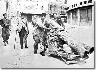 militiamen expel Palestinian Arabs from Haifa, April 1948.