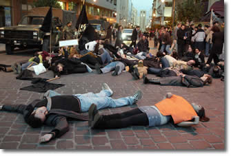 from Hurriyyat Khassa and others stage a "die-in" in Beirut to